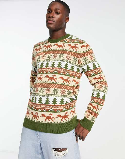 Threadbare crew neck fox Christmas jumper in camel Very well made.