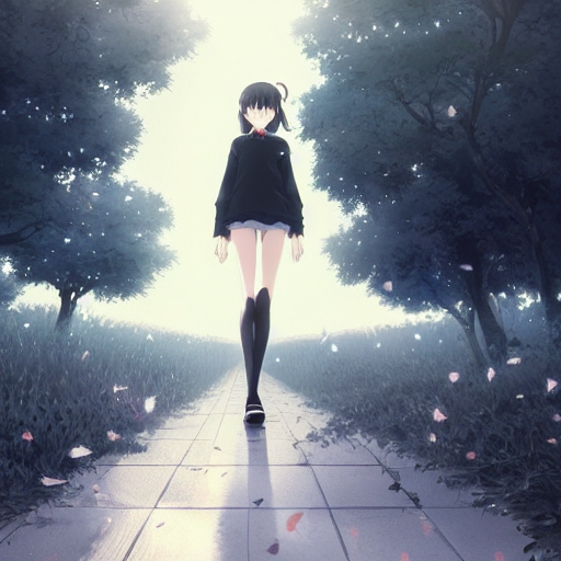 prompthunt anime cute girl in black sweater white white pale hair Very well made.