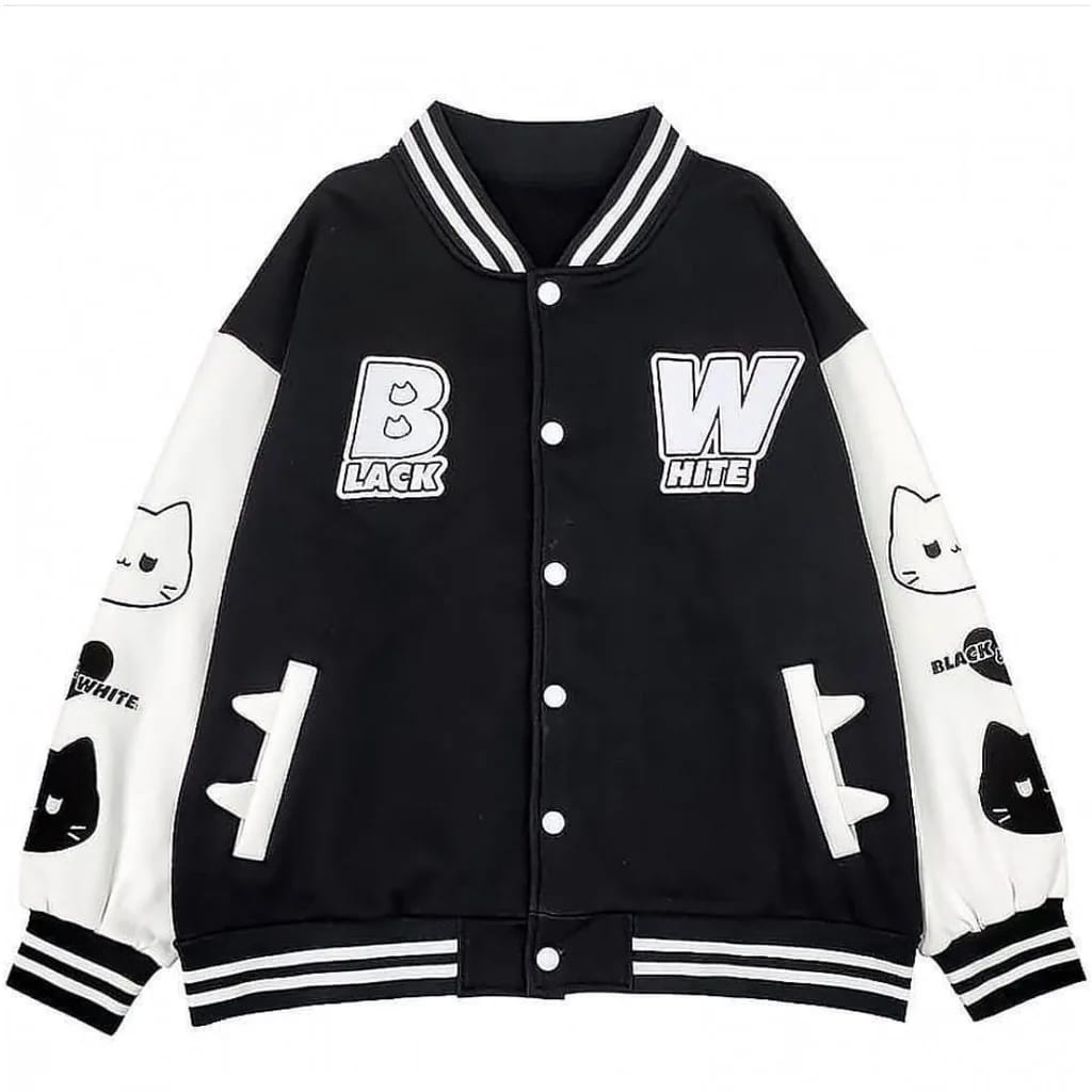 Black WHITE CUTE CAT JACKET BASEBALL MRC Shopee Singapore Very well made.