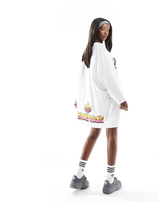 adidas Originals x Jeremy Scott one size t shirt dress in white with front graphics Very well made.