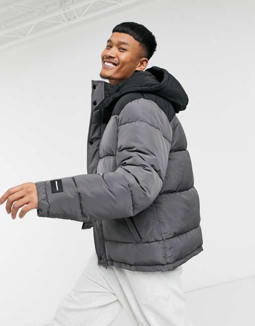 Mens Dark Grey Puffer Jacket Zipped Pockets Hooded Winter Coat Very well made.