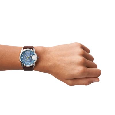 Diesel Mega Chief Quartz Blue Dial Brown Leather DZ1399 Mens Watch Very well made.