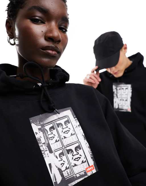 Obey Felpa con cappuccio unisex nera con foto e icona ASOS Very well made.