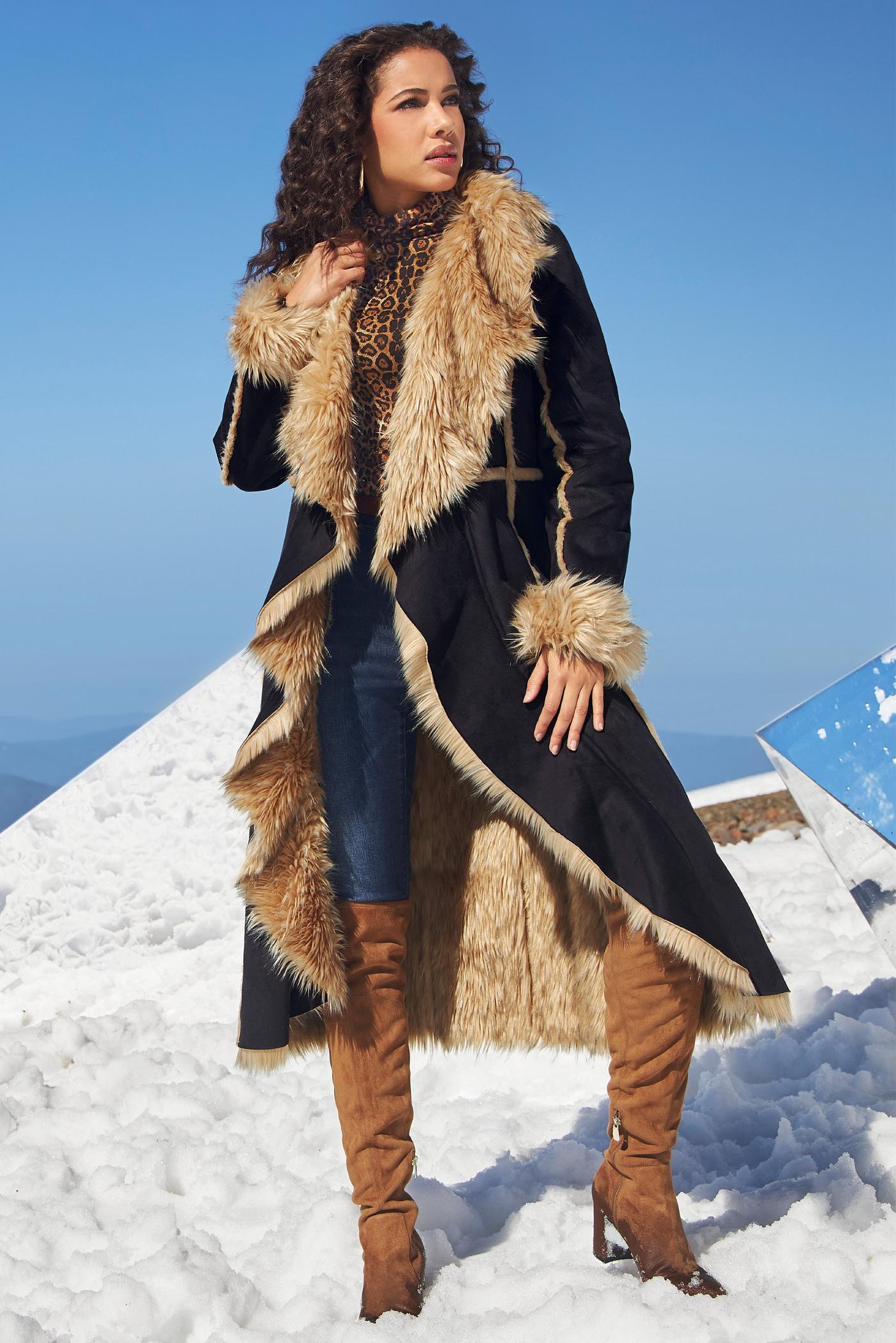 Faux Fur Cascading Coat Black Brown Boston Proper Very well made.
