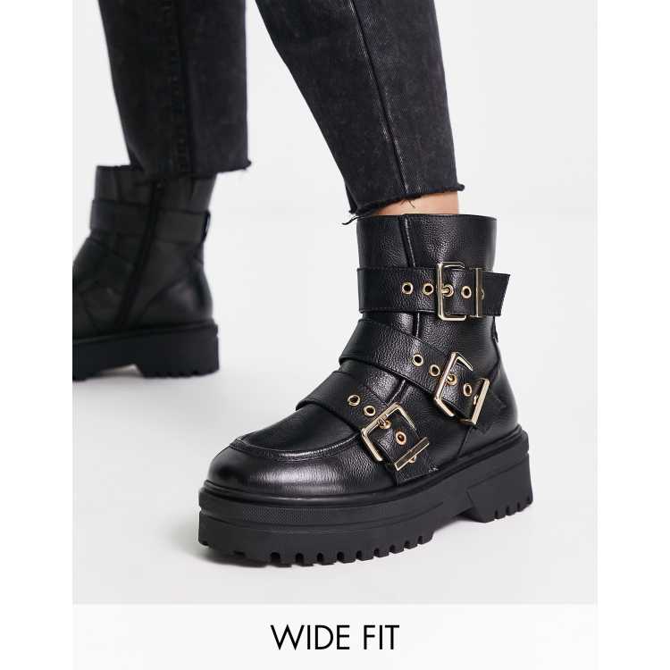 Simply Be Extra Wide Fit leather flat ankle boots with buckle Very well made.