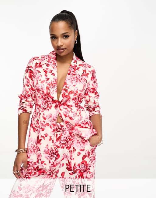 Ever New Petite satin blazer in red floral print part of a set Very well made.
