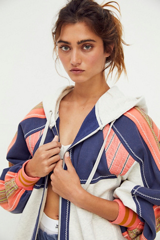 Cropped Hoodie Denim Jacket in Red Blue Very well made.