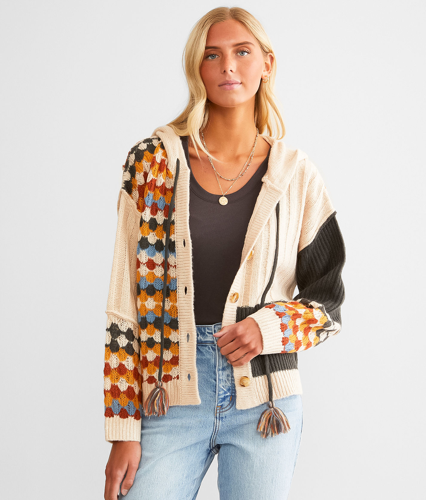 Miss Me Mixed Print Hooded Cardigan Sweater Women s Sweaters in Very well made.