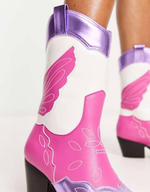 Public Desire Wide Fit Exclusive Howdy western boots in metallic Very well made.