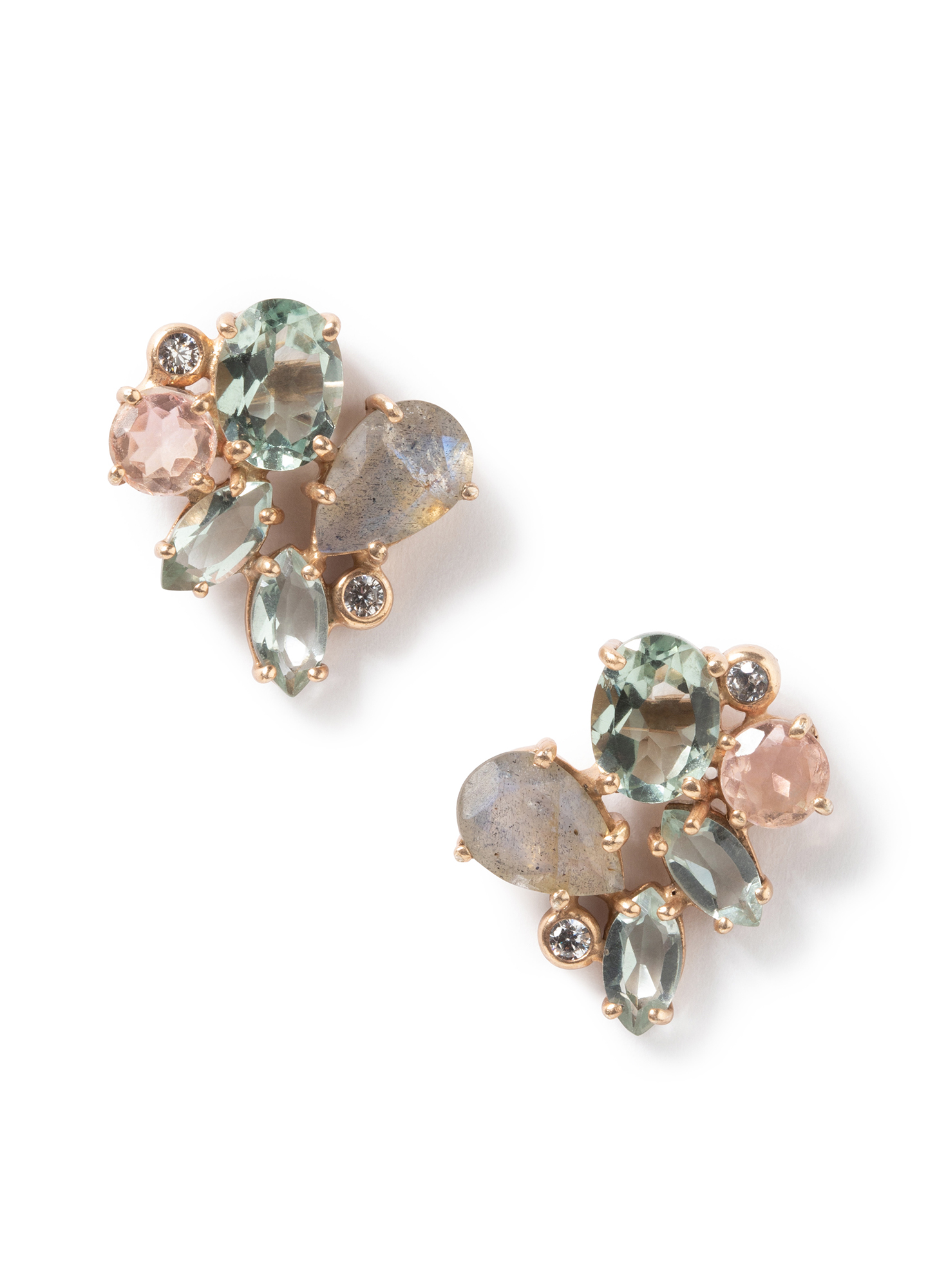 9ct yellow gold 6mm x 4mm multi gemstone flower cluster earrings Very well made.