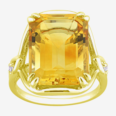 Womens Genuine Yellow Citrine 18K Gold Over Silver Cocktail Ring Very well made.