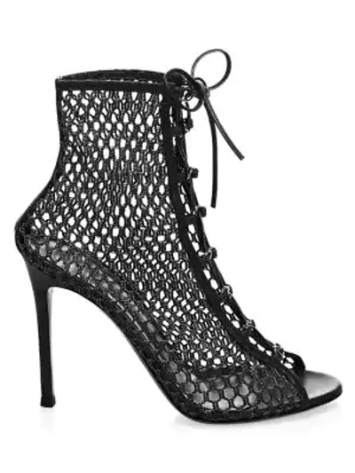 Gianvito Rossi 85 Lace up Mesh And Leather Ankle Boots In Black Very well made.