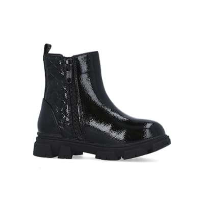 Mini girls Black PU Monogram Chelsea boots River Island Very well made.