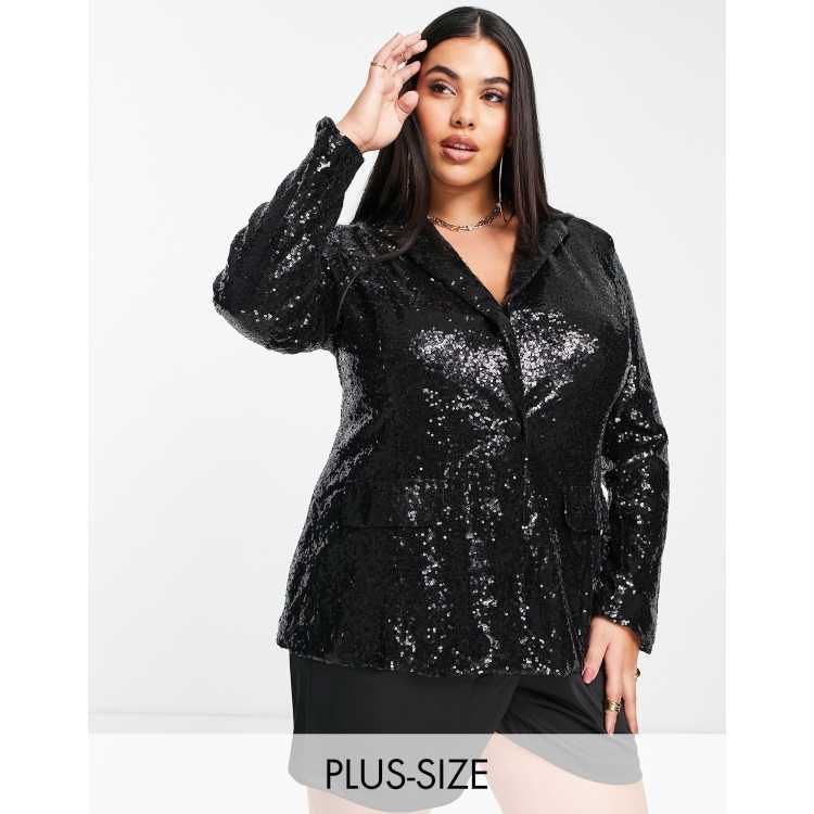 Saint Genies Plus sequin blazer co ord in black sequin ASOS Very well made.