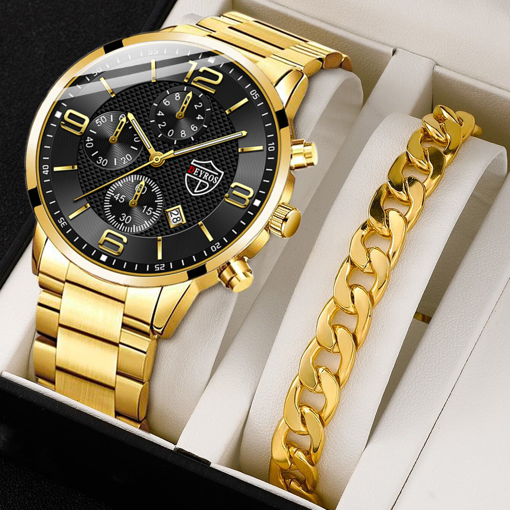 2PCS Fashion Mens Bracelet Watches Set Luxury Men Sports Silver Very well made.
