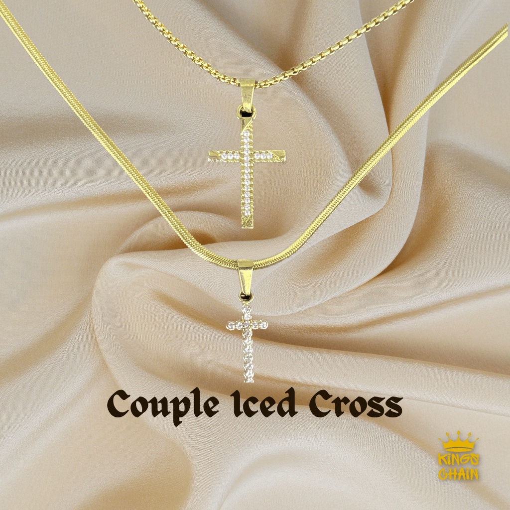 Couple Iced Cross Necklace With Chain 18K Gold Plated Non Tarnish Very well made.