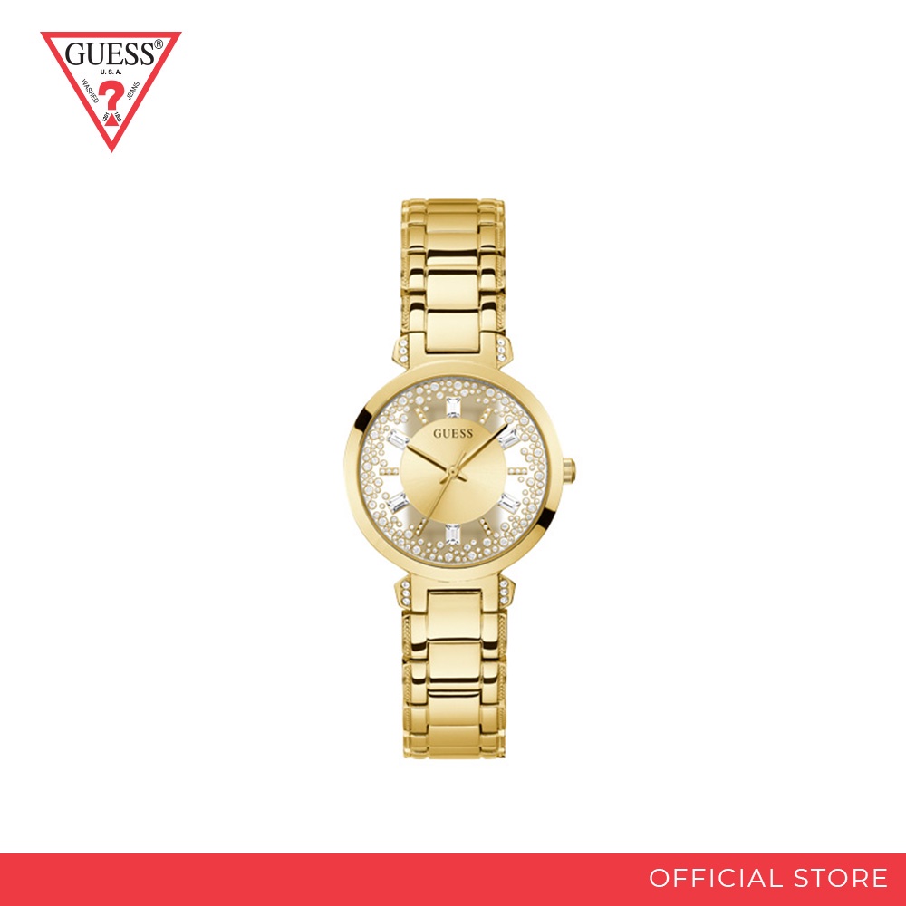 GUESS CRYSTAL CLEAR LADIES DRESS Gold Tone Case Champagne Dial Very well made.
