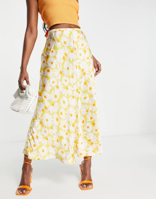 ASOS DESIGN Gonna midi a ruota in raso con stampa di margherite Very well made.