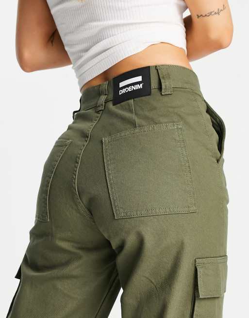Dr Denim Echo utility wide leg cargo pants in dark green Very well made.