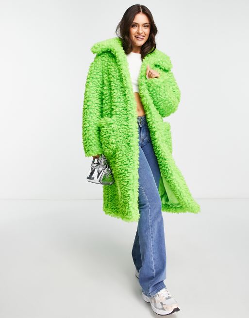 Miss Selfridge fluffy borg maxi coat in bright green Very well made.