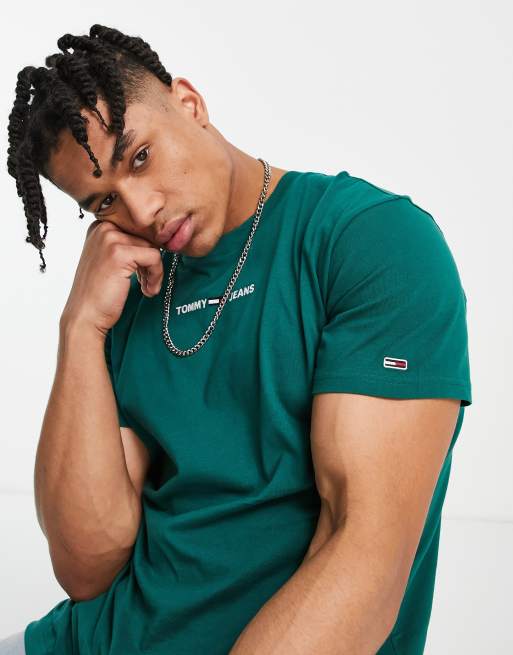 Tommy Jeans small text chest logo t shirt in green Very well made.