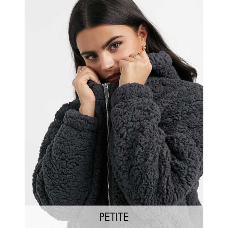 New Look Petite teddy borg hooded jacket in charcoal grey ASOS Very well made.