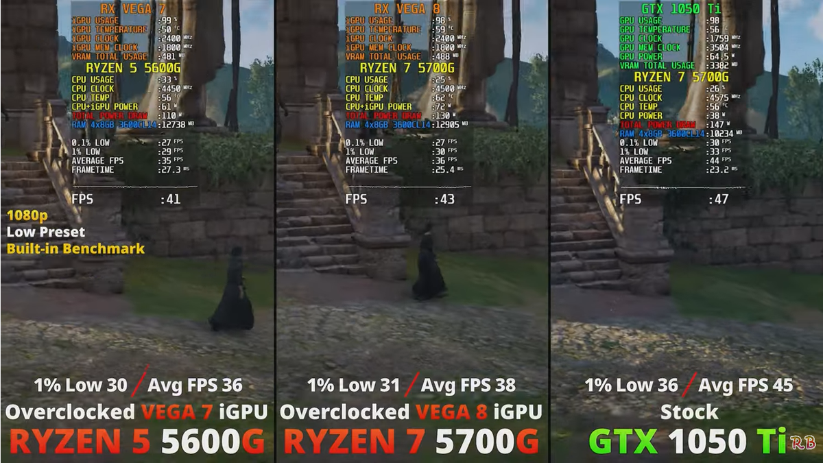 Ryzen 5 5600G VEGA 7 vs Ryzen 7 5700G VEGA 8 vs GTX 1050 Ti Very well made.