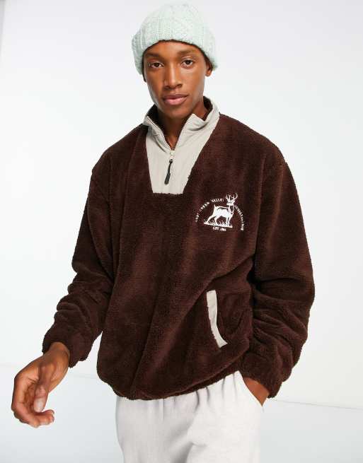 ASOS DESIGN oversized half zip sweatshirt in brown borg with Very well made.