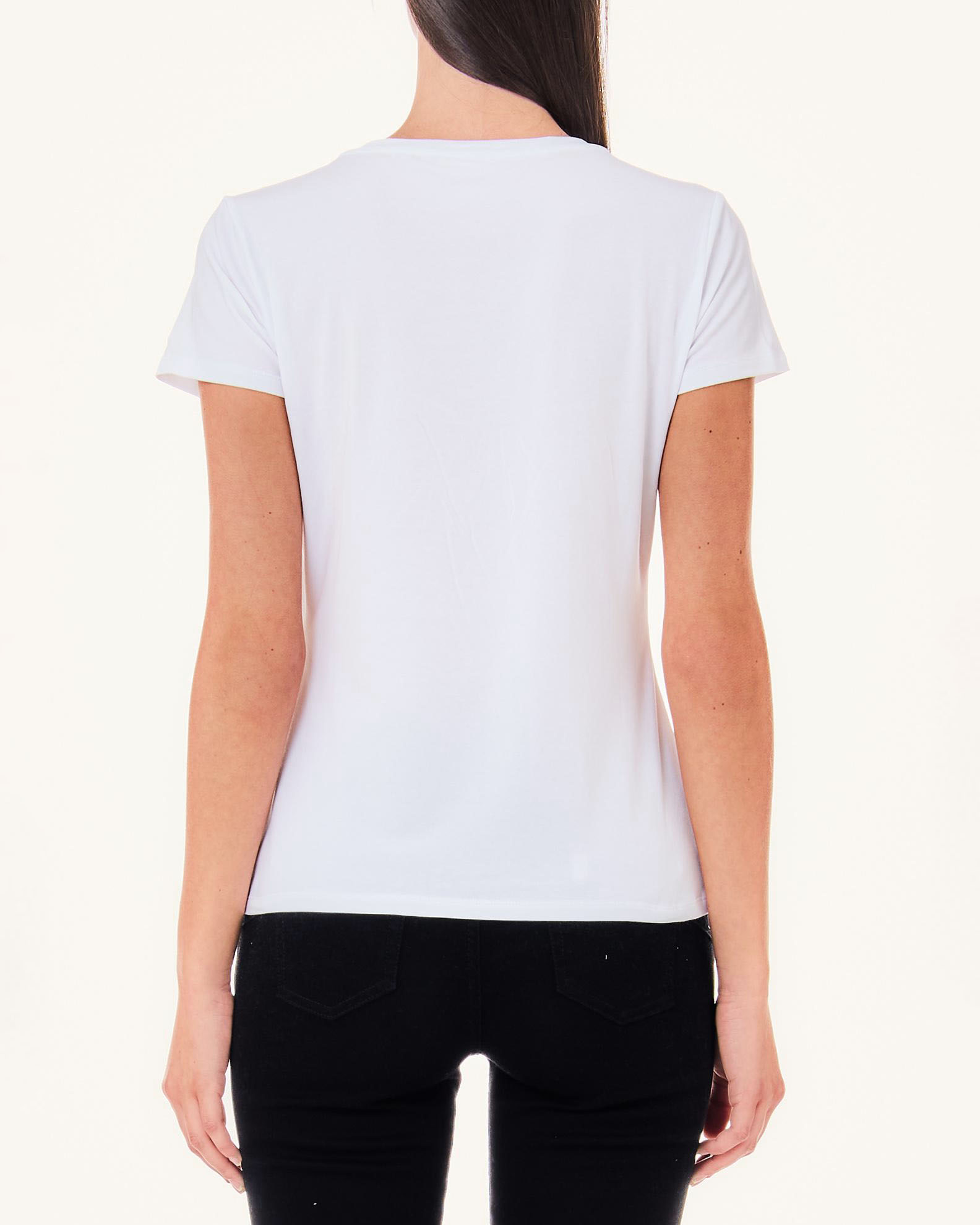 T shirt bianca in cotone con fenicotteri stampati e strass applicati Very well made.