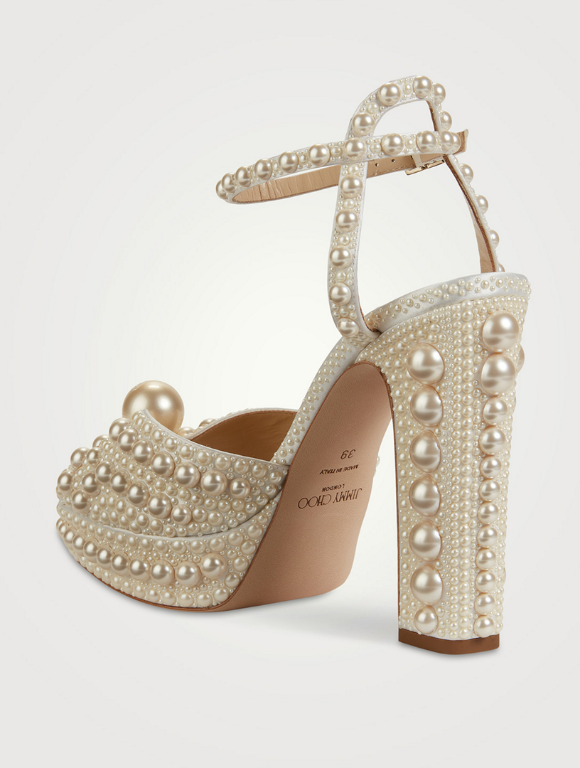 Sacaria Pearl Embellished Satin Platform Sandals Very well made.