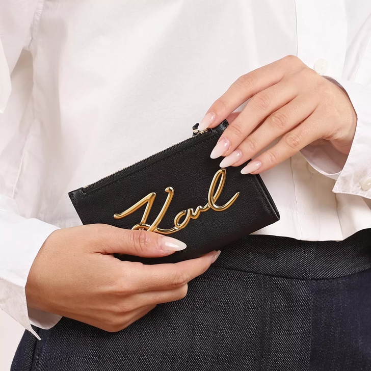 Karl Lagerfeld K Signature Bifold Zip Ch Black Gold Portafoglio Very well made.