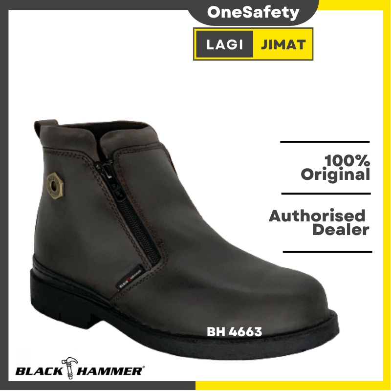 READY STOCK Kasut Kulit Keselamatan Black Hammer Men Full Leather Mid Cut Safety Shoes Brown Bh4664 L Very well made.