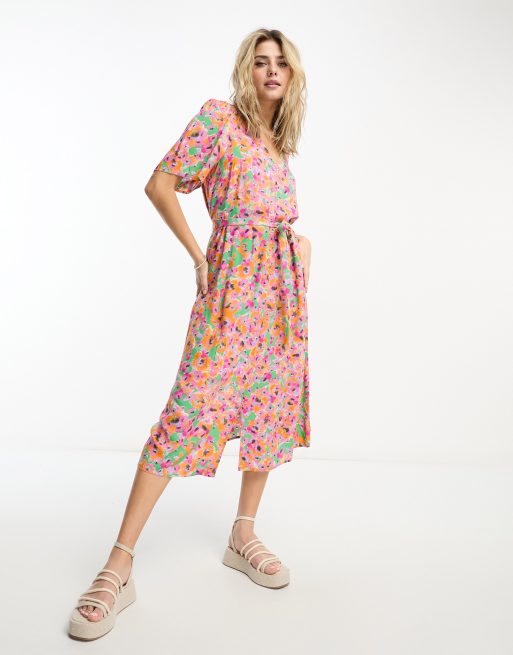 Monki wrap midi dress in pink floral print ASOS Very well made.