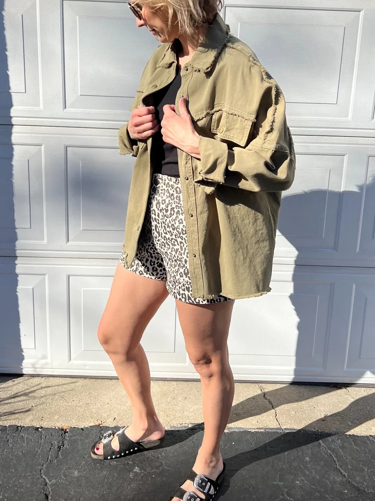 New Womens USA OLIVE ROCK ROLL DISTRESSED UTILITY SHACKET JACKET Very well made.