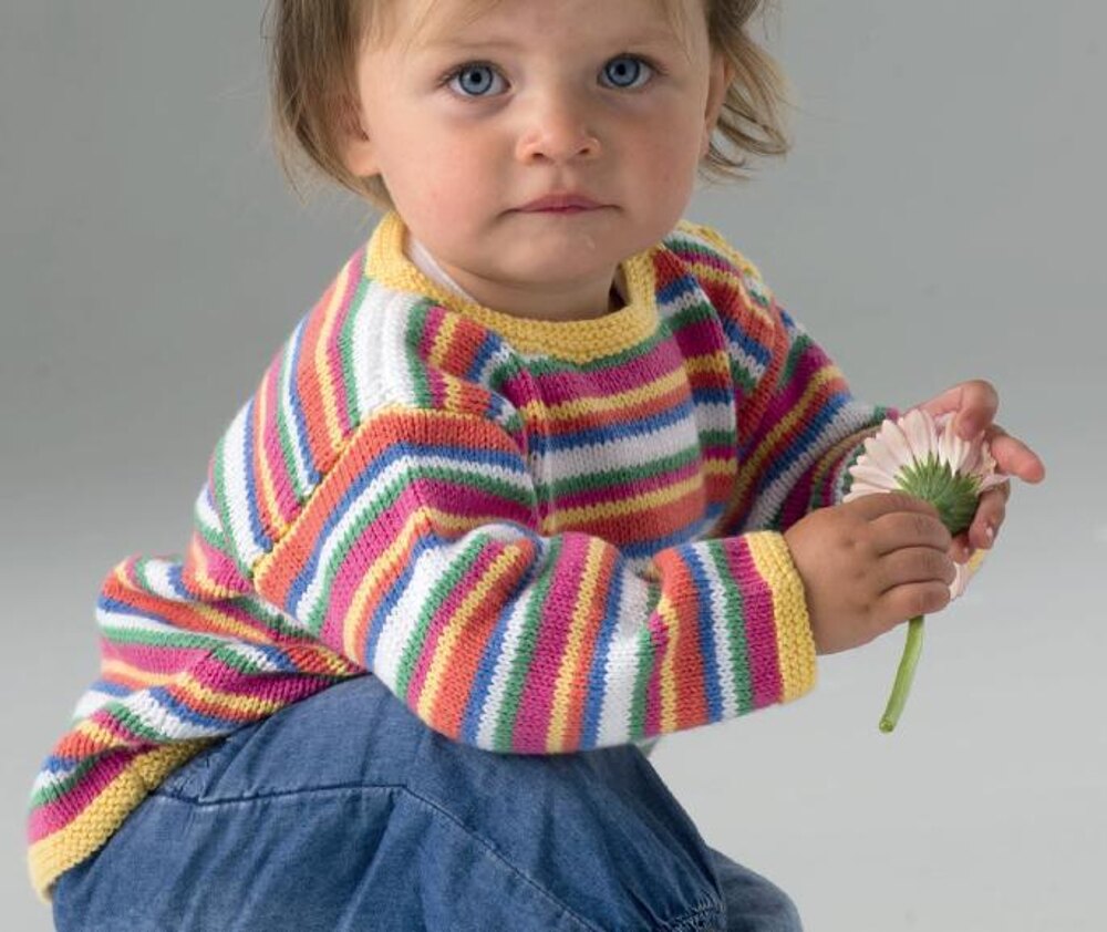 Happy Stripes Jumper Knitting Pattern Multiple sizes Boys Girls Sweater Easy Very well made.