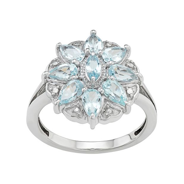 Jewelexcess Sterling Silver Aquamarine Diamond Accent Flower Ring Very well made.