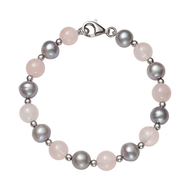 Sterling Silver Gray Freshwater Pearl Rose Quartz and Silver Bead Very well made.