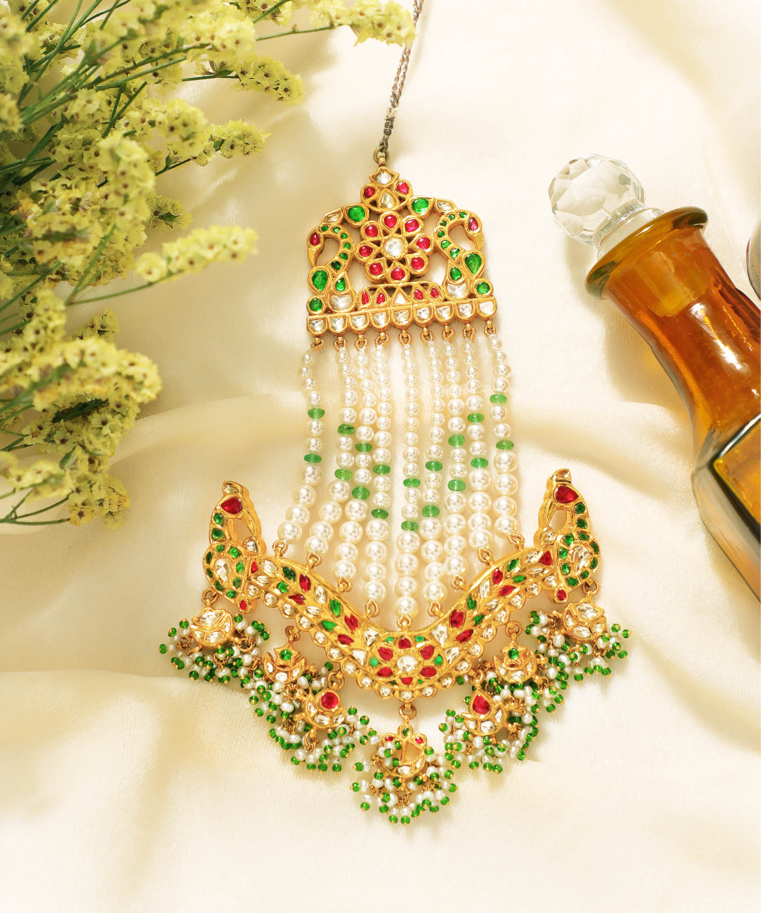 Red Green Jadau Kundan Passa Side Jhoomer Very well made.