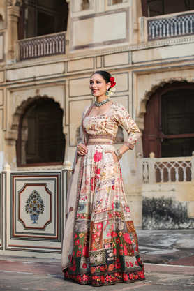 Buy SCAKHI Natural Printed Square Neck Silk Women s Lehenga Choli Very well made.