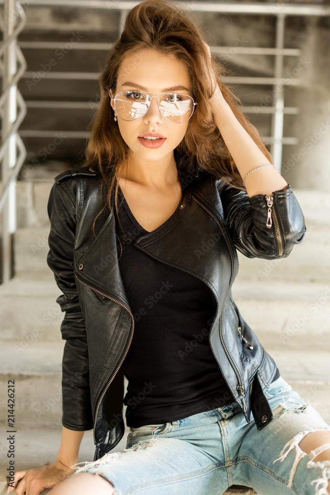 Lifestyle photo of young cheerful woman in fashion transparent Very well made.