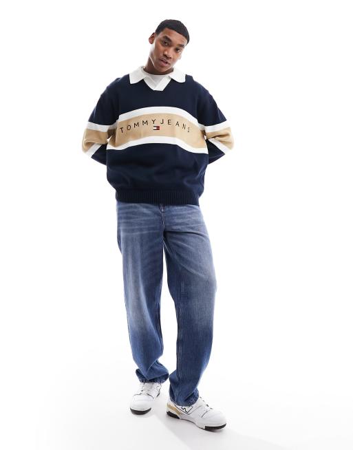 Tommy Jeans Camicia stile rugby comoda in maglia blu navy con Very well made.