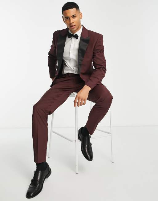 ASOS DESIGN slim tuxedo suit jacket in burgundy ASOS Very well made.