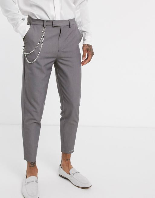 Mauvais cropped tapered trousers with chain and logo in grey Very well made.