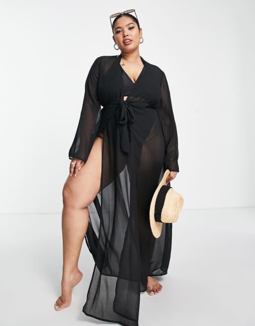 ASOS DESIGN Curve tie waist maxi beach kimono in black Very well made.