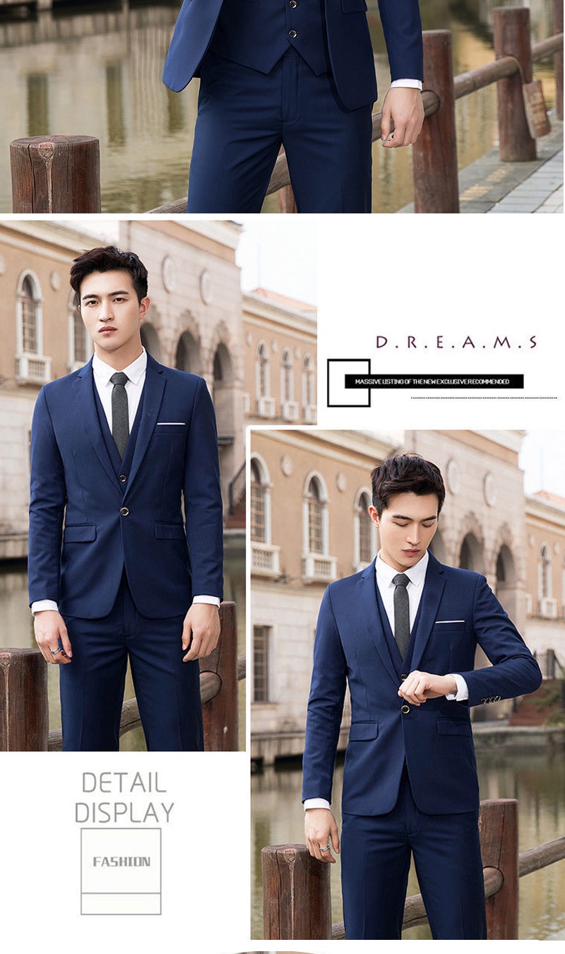 3 Piece Set Men s Blazer Set Suit Korean Style Slim Fit Office Very well made.