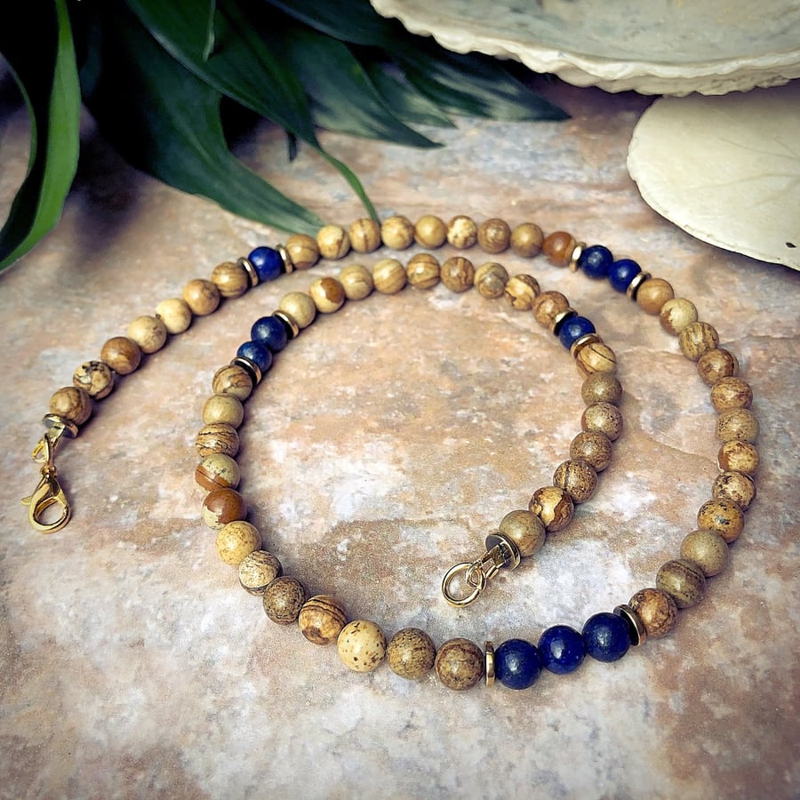 Men s Lapis Lazuli Jasper Bead Necklace Men s Gemstone Necklace Boho Necklace Very well made.