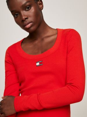 Mini abito aderente a coste con distintivo Rosso Tommy Hilfiger Very well made.