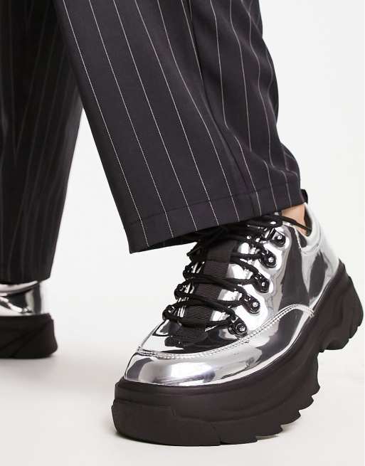 ASOS DESIGN lace up shoes in silver faux leather with chunky sole Very well made.