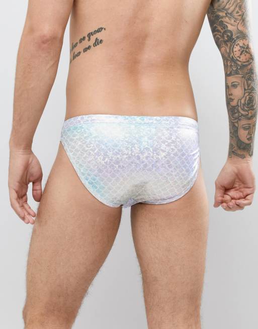 ASOS DESIGN swim trunks in mermaid foil design ASOS Very well made.