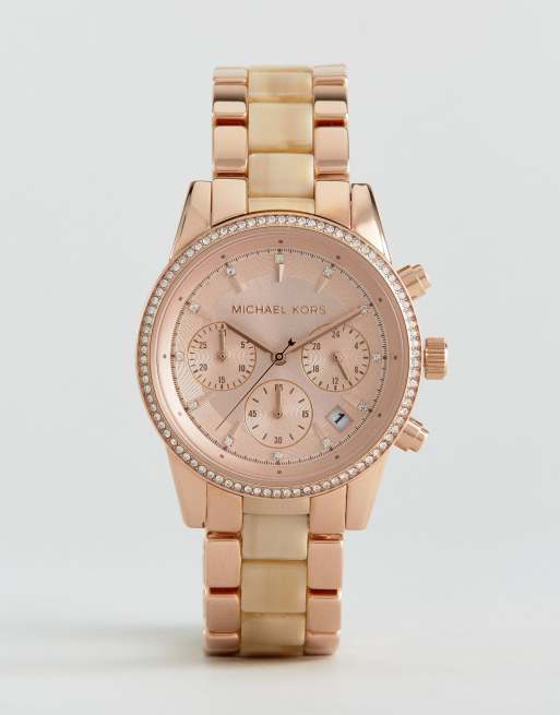 Michael Kors Ladies Ritz Rose Gold Tone and Acetate Watch Very well made.